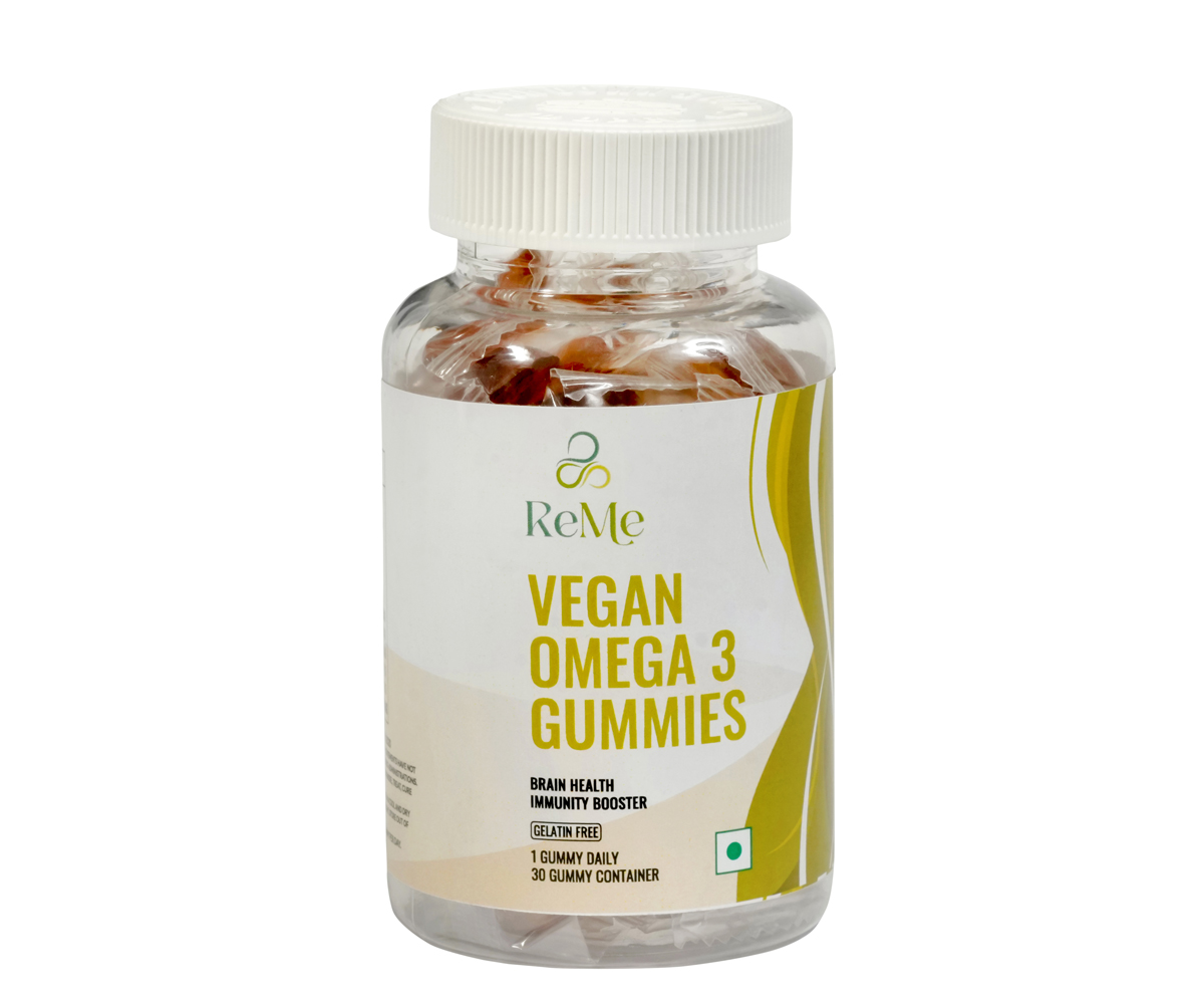ReMe Vegan Omega 3 gummies- 100% plant based/Coffee/mango flavour/For men & womenSupports brain, heart, eyes, and joints health//Nourishes skin/Immunity Booster/Gelatin free/US FDA registered/Non GMO ingredients